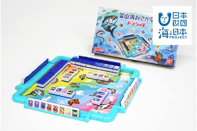 富山湾のさかなについて学べるオリジナルの海洋教育教材、富山湾おさかなドンジャラです。株式会社バンダイのご協力のもと、富山北部高校の生徒がパイのデザインを手掛け、遊びながら楽しくさかなを覚えられます。