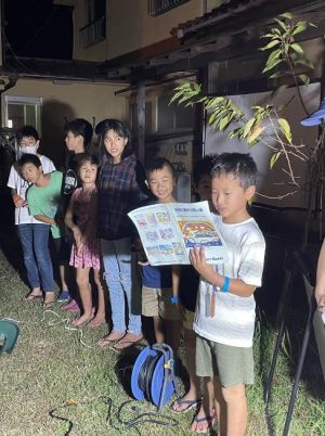 海で様々な体験をしたあとにはBBQを実施し、その後には福島の子どもたち、御宿町の子どもたち、デフの子どもたちが見えている世界のそれぞれの良いところを話し合い発表をしてもらいました。福島の自然がいっぱいなところやおいしい果物の産地であるところ、千葉の御宿には綺麗な海があることや動物について、デフキッズからは聞こえないからこそ良いこともあり、手話で堂々と話をするから陰口もなく嫌な気持にならないんだと教えてくれました。