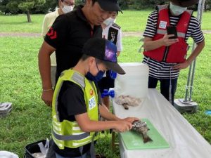 川崎みなと祭り実行委員会は、東扇島西公園で親子海釣り教室を開催。ベテラン講師を招き、海のマナーや釣りのコツを丁寧に教えてもらいながら親子で海釣りを楽しみました。また、魚のさばき方も実演。釣りの後には、海・公園内のごみ拾いも行いました。