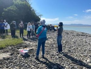 まず最初に、清野聡子准教授より「熊本県八代市球磨川河口干潟では、希少生物が生息し、恵まれた環境を活かした水産業で知られています。」という挨拶をいただき、干潟を観察する前には八代市役所の職員の方からその特徴などをお話しいただきました。