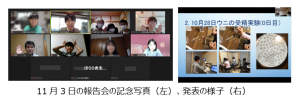 キタムラサキウニの発生体験の報告会を11月2日と3日、アカウニの発生体験の報告会を11月30日にオンライン上で開催しました。ここでは一般枠と学校枠からの参加者が一緒になって学んだことを発表し合いました。家庭での実験の報告、学校から部活動で参加している生徒の発表、教員からの授業で用いた際の報告など、様々な立場の人がウニの発生実験や幼生飼育という共通項で繋がり、皆で学んだことを共有する場となりました。ウニ教材で学んだことは「誰かに伝えたい」という気持ちにうまく繋がるようで、この会への参加をきっかけにプレゼン技術が上達していく参加者も多く見られました。