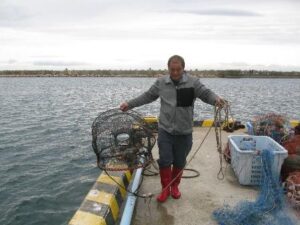 淡路市富島の富島漁港で開催した第5回魚釣り教室と生き物観察会に、淡路市、洲本市、南あわじ市、神戸市からたくさんの方が参加してくれました。秋も深まり今回も鈴なりの釣果を期待していたのですが、この日は強い西風でしたので、海面は波立ち魚釣りは厳しい結果となりました。そんなときは仕掛けたかごに期待です。今回は、富島漁業協同組合の地元漁師で理事の田中さんが、かごを仕掛ける前にすべての穴を修繕してくれたので、小さな魚も逃げることなく獲ることができました。今年度は淡路市役所と神戸新聞からこの事業の取材依頼があったので、理事の田中さんに取材を受けてもらいました。淡路市の全世帯配布の広報誌に名前と画像が掲載されましたので、どこへ行っても良いことしてるな~と話題に出たようです。