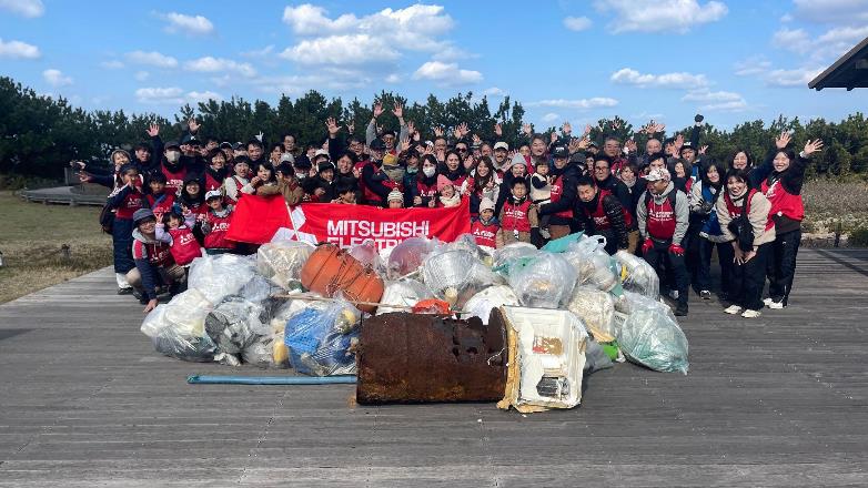 この日は、三菱電機株式会社九州支社の従業員と九州地区関係会社従業員、そのご家族を含む133名が参加し、2トントラック2台分にも及ぶ大量の漂着ごみを回収することに成功しました。