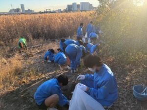 多摩川とびはぜ倶楽部は、大師橋干潟での生きもの観察やごみ拾いを通して海や川に感謝の気持ちを育み、「子どもたちが裸足で遊べる干潟づくり」を行うことを目的に、4月~9月は観察会と環境整備活動を並行して、また「羽田ふるさと再生プロジェクト」として10月~3月は環境整備活動のみを行っています。2024年は10月に入っても暑い日が続いていたため、10月20日も観察会と並行して環境整備活動を行いました。少しずつ協力してくださるボランティアも増えて大きなごみはほとんど見られなくなってきました。