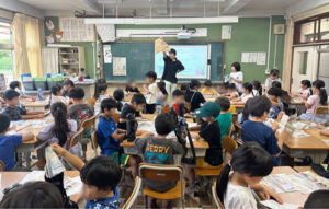 その後、issue+designの「うみごme」を活用し、ごみがどこから来て、どこへ行くのかを学習。1〜2年生クラスには紙芝居を導入し、わかりやすく解説しました。