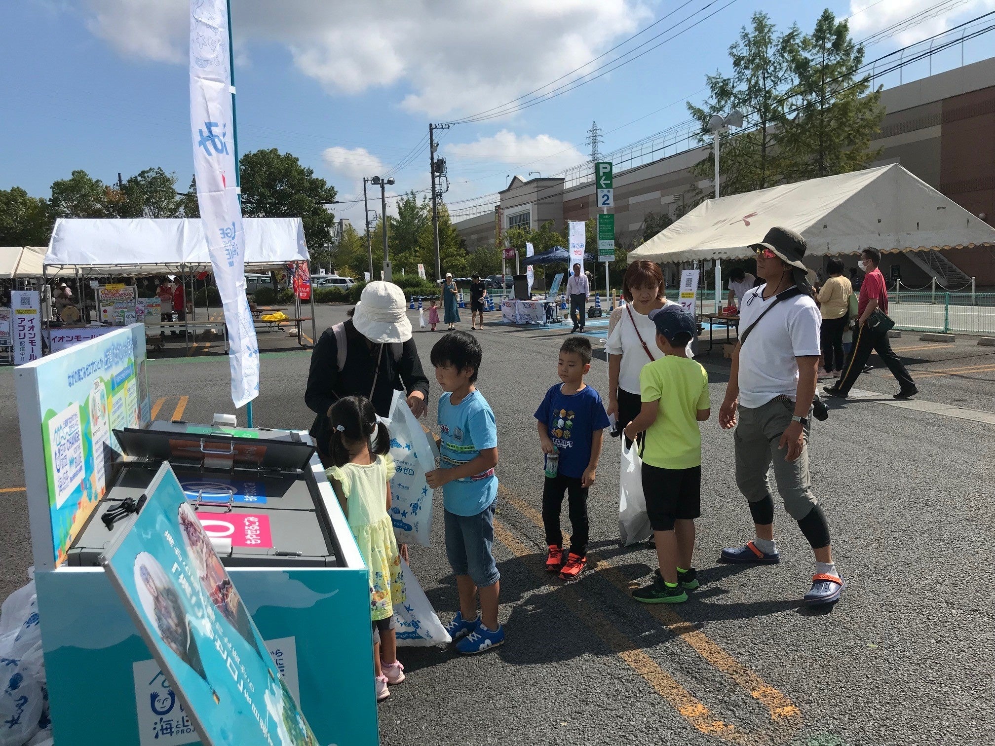 また、店舗では9月1日からモール来店者にはプロジェクトのオリジナルごみ袋を配布。イベント当日に、”自宅からモールまでのごみ拾い”を促すことで、より広範囲でのごみゼロを訴えました。イベント会場にはごみ袋を持った来場者が多数訪れ、ショッピングモールの訴求力の高さを窺わせました。