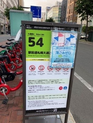 街をきれいにし続ければ海はもっともっと美しくなる!CHANGE FOR THE BLUE in北海道とシェアサイクル「ポロクル」連携企画!札幌市内のシェアサイクルポートにごみ袋ケースを設置