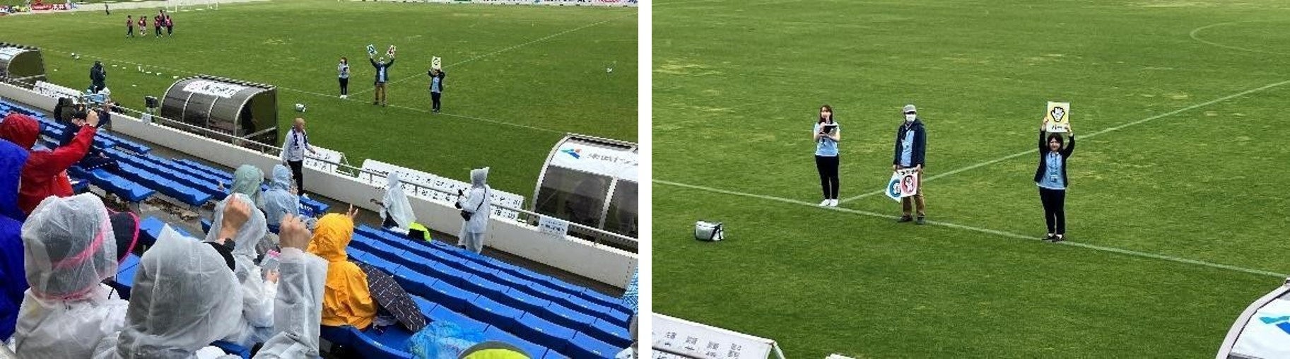 こうした中で2020年より、JFLラインメール青森FCにご協力をいただき「海ごみゼロマッチ」と題した試合&清掃活動を開催しています。今年度は5月28日(日)に、新青森県総合運動公園球技場でのFCマルヤス岡崎との対戦を「海ごみゼロマッチ」として開催して、試合の後に選手・スタッフ・観客などが試合会場内の清掃活動を実施し、参加者への海洋ごみ問題の周知啓発とともに、海洋ごみを出さないという意識を醸成するきっかけを作りました。
