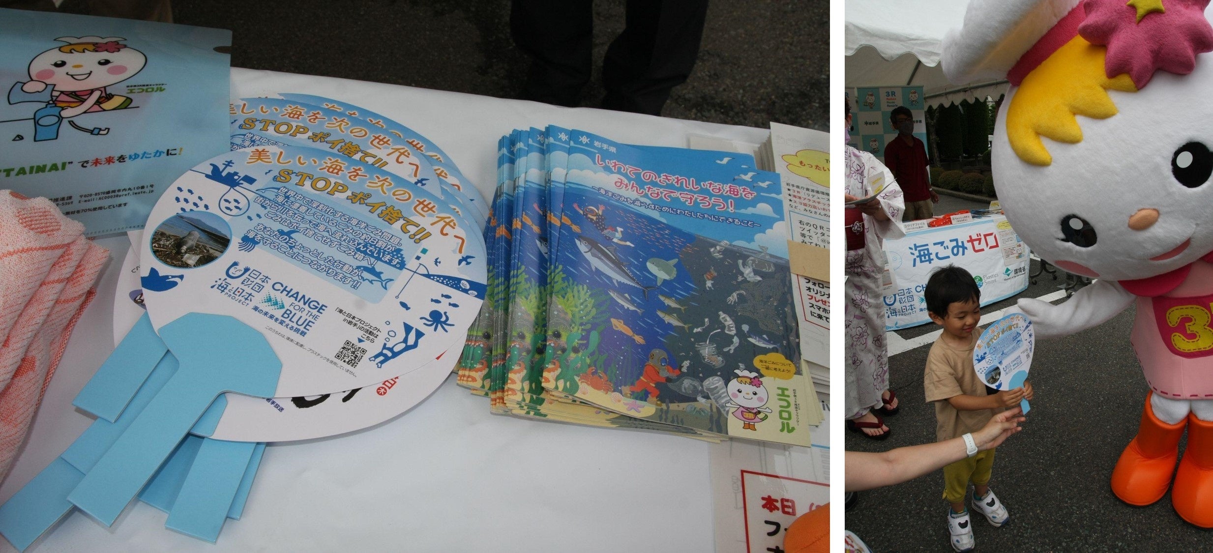 会場では「海を守ろう!」と呼びかける「オリジナルうちわ」を岩手県と共同で配布
