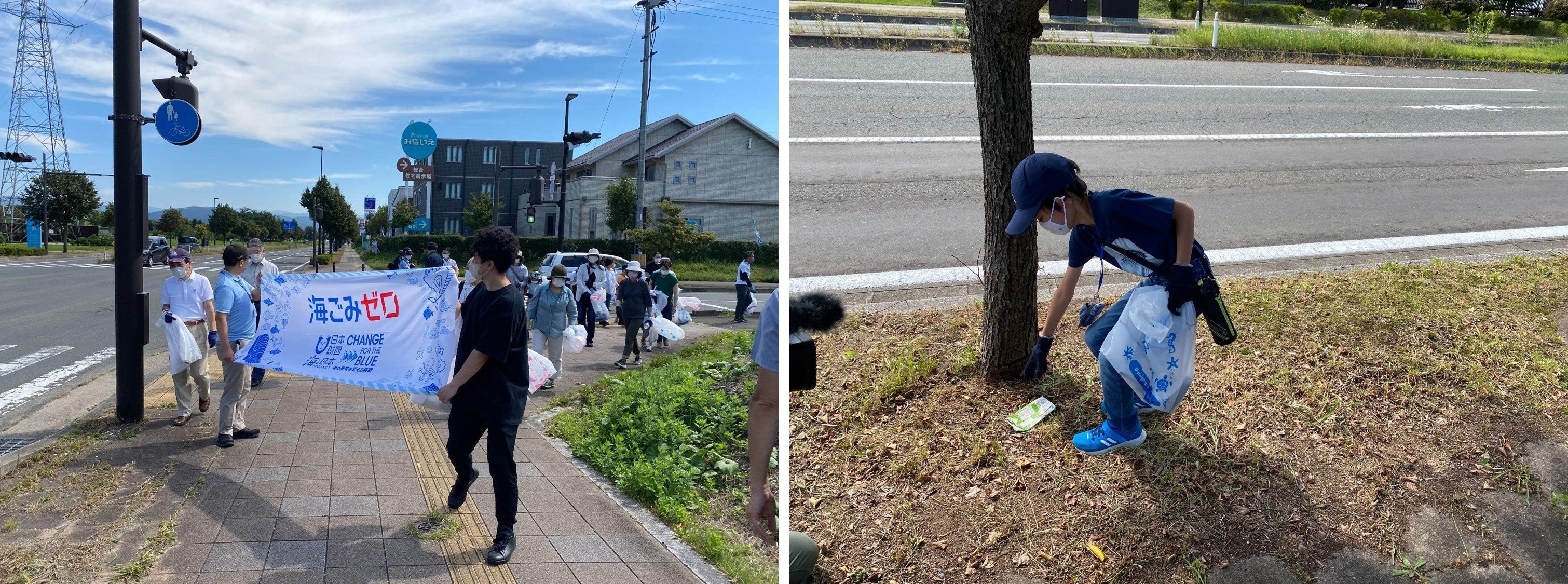 総合住宅展示場「杜の住宅公園 みらいえ」で開催のイベント「三陸鉄道フェア」と連動して、展示場を発着点として園地内や周辺エリアの歩道や公園などで「秋の海ごみゼロウィーク」をPRする横断幕を掲げながら行進し、ごみ拾いを行ないました。