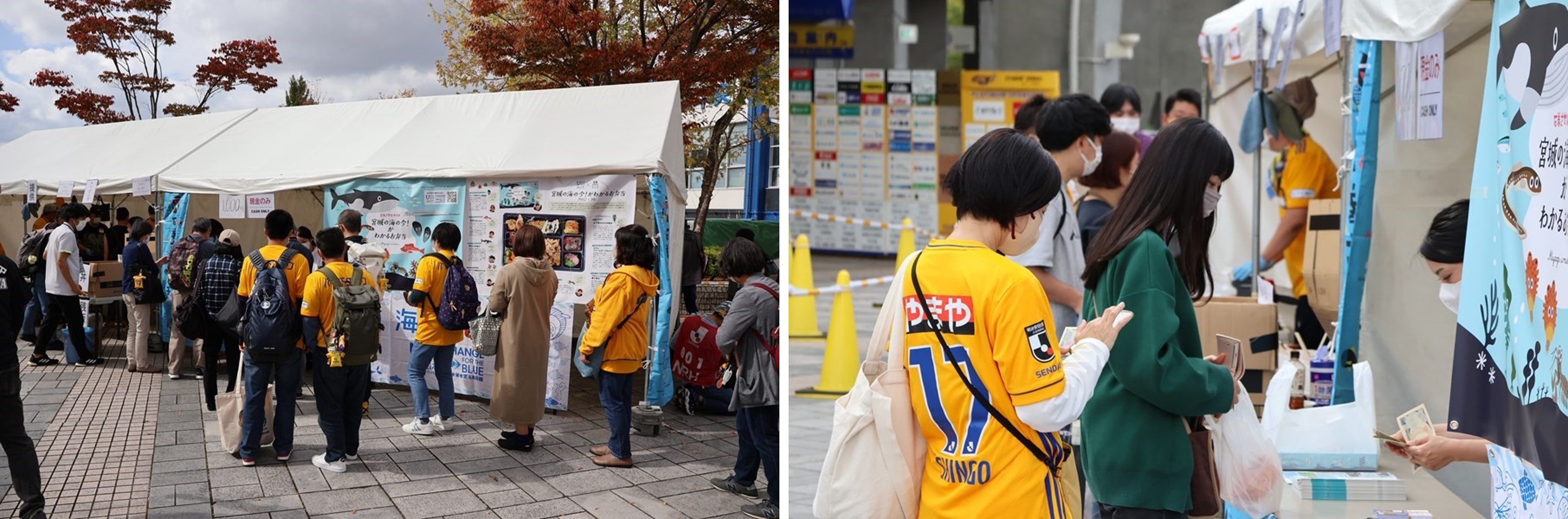 日本財団「CHANGE FOR THE BLUE」事業を進める宮城海ごみプロジェクト実行委員会(事務局:khb東日本放送)は、海と日本プロジェクトの趣旨に賛同する石巻さかな女子部(合同会社よあけのてがみ)とともに、「宮城の海の今がわかる!お弁当」を企画開発し、10月16日の明治安田生命J2リーグ・ベガルタ仙台のホームゲームにて限定販売しました。この取り組みは、日本財団が推進する海洋ごみ対策プロジェクト「海と日本プロジェクト・CHANGE FOR THE BLUE」の一環で実施したものです。