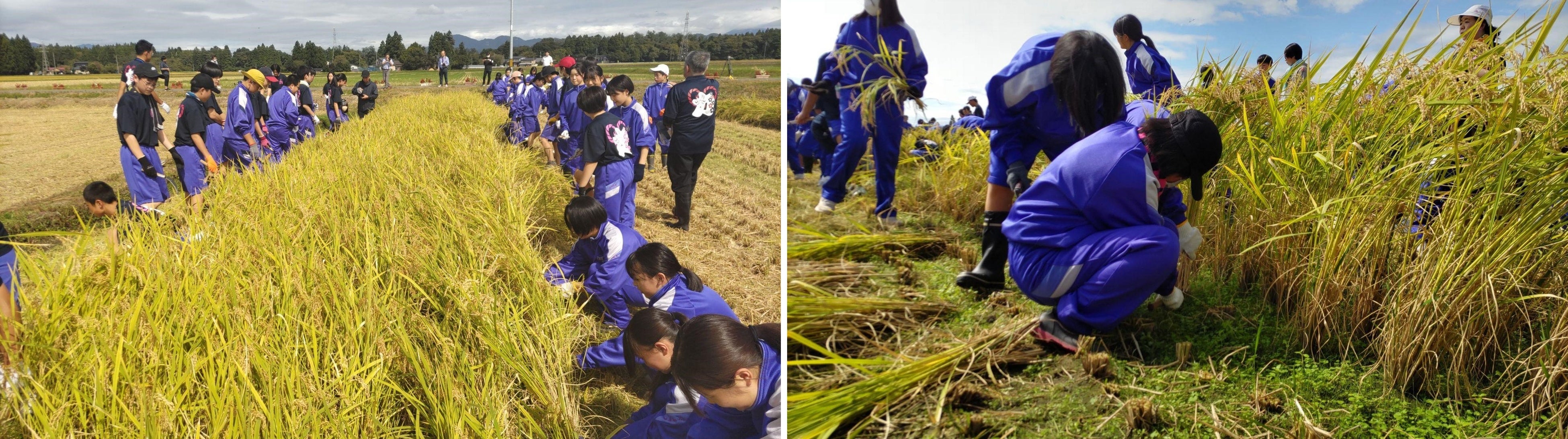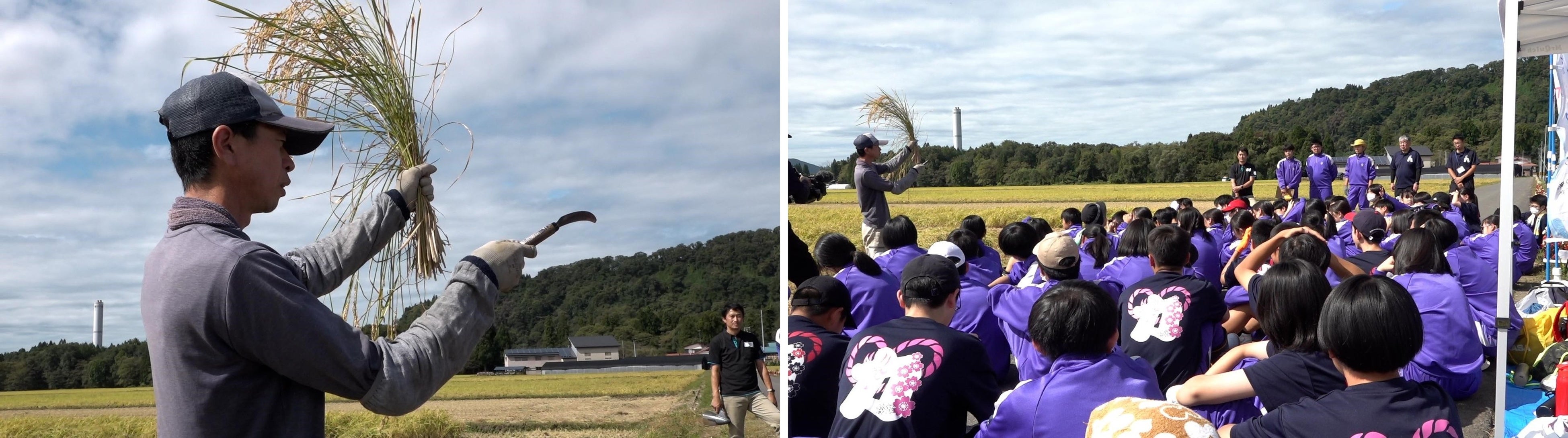 地元の中学生が農業の現場から海洋ごみゼロ宣言!脱プラスチック肥料を使用した米作りで海ごみゼロ宣言!稲刈り篇を開催しました。