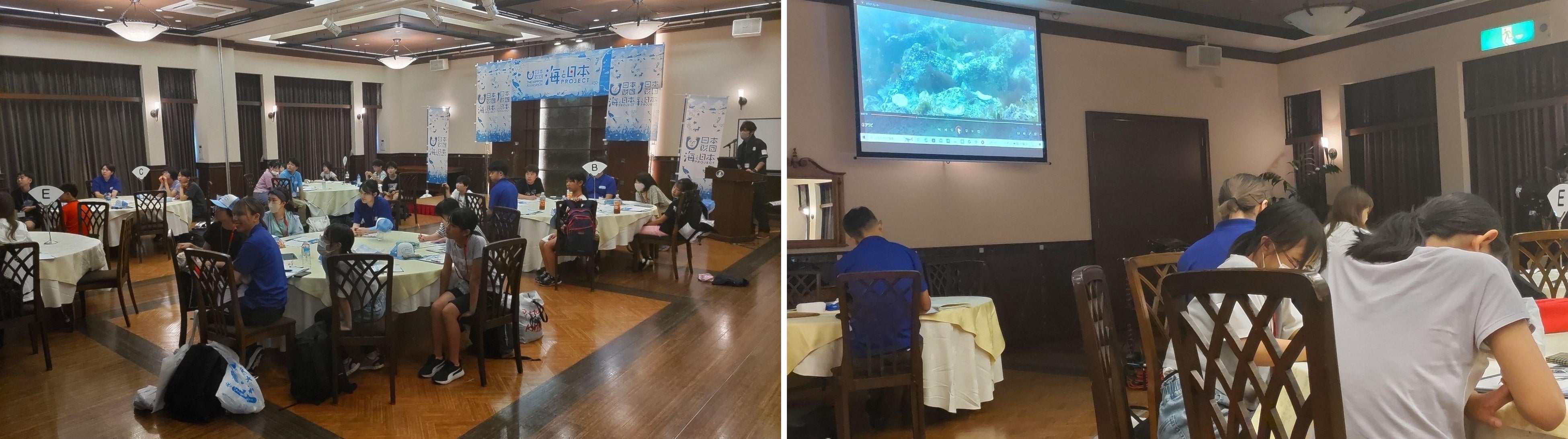 イベント開催地の秋田県にかほ市では、初日の夕方から降り続いた雨の影響で大雨警報と土砂災害警報が発令されていたので、2日目は外での学習を中止し雨プログラムでの対応となりました。宿泊先の「ホテルエクセルキクスイ」は災害避難場所にも指定されているホテルで安全に2日目の学習が出来ました。