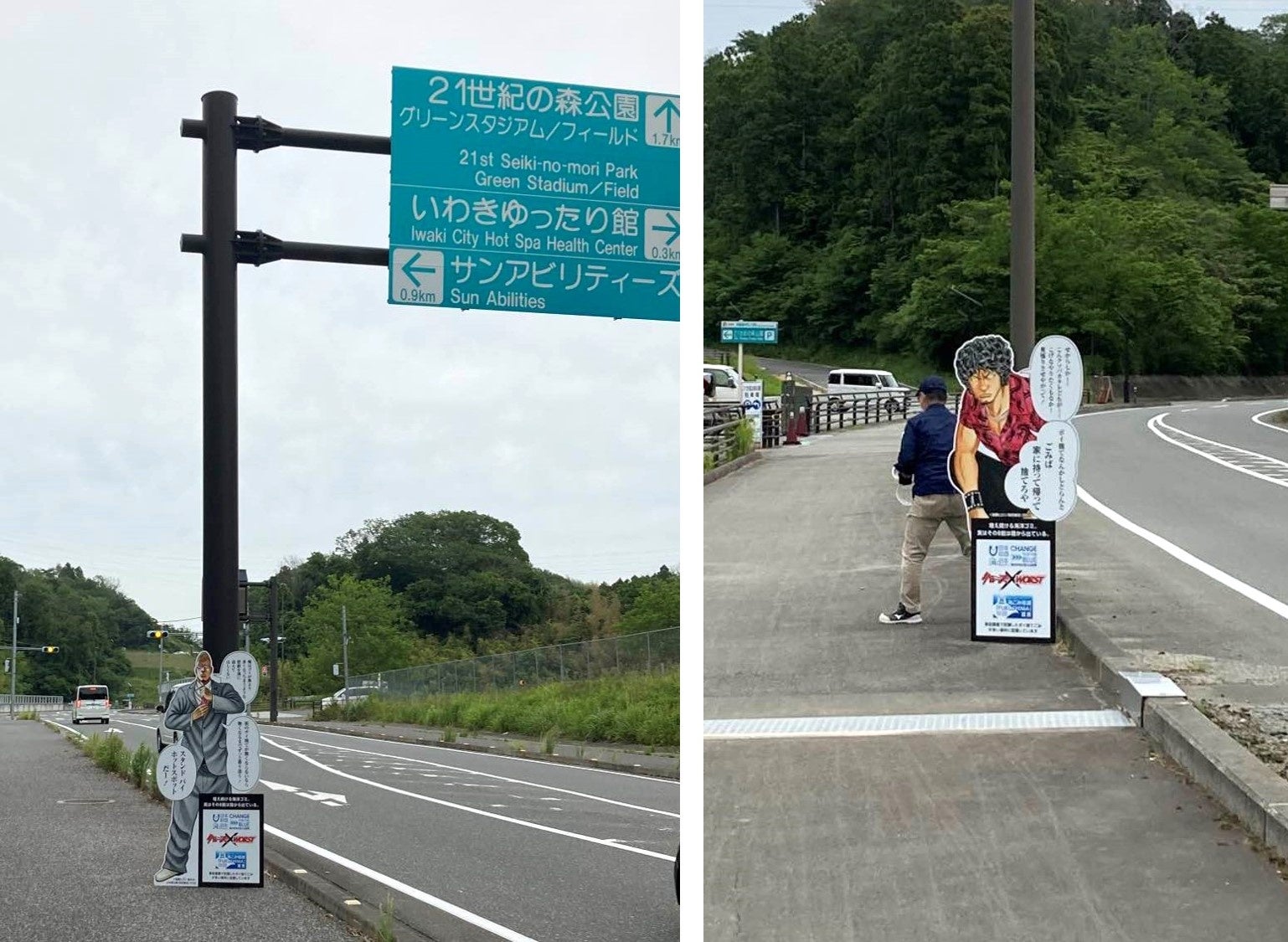 湯本駅からいわきグリーンフィールドまでの約2.6kmの区間に、会津坂下町出身の漫画家・髙橋ヒロシ先生の作品「クローズ」×「WORST」とコラボレーションしたポイ捨て抑止啓発看板を設置しました。
