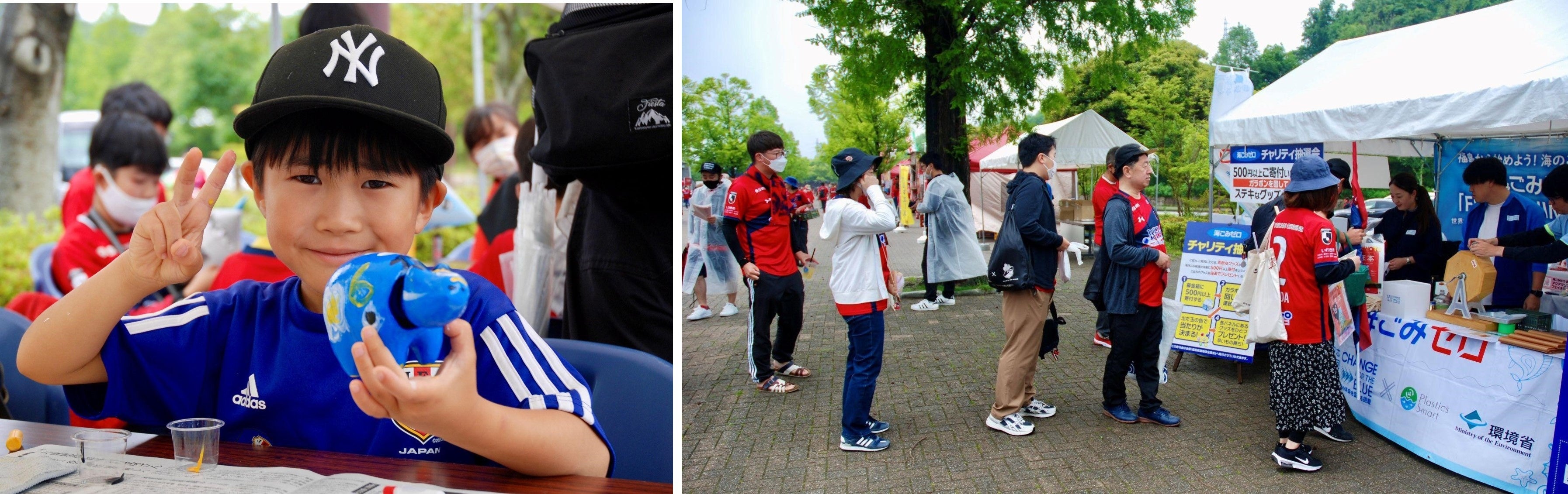 いわきFCのアカデミー生やサポーターと清掃活動を行い、ブースを設け選手のサイン入りグッズなどが当たるチャリティ抽選会、「海べこ」の絵付け体験、アクアマリンふくしまペーパークラフト「サメかぶと」のワークショップを行いました。チャリティでは浄財として94,300円が集まり、後日、福島県環境保全基金に寄附される予定です。