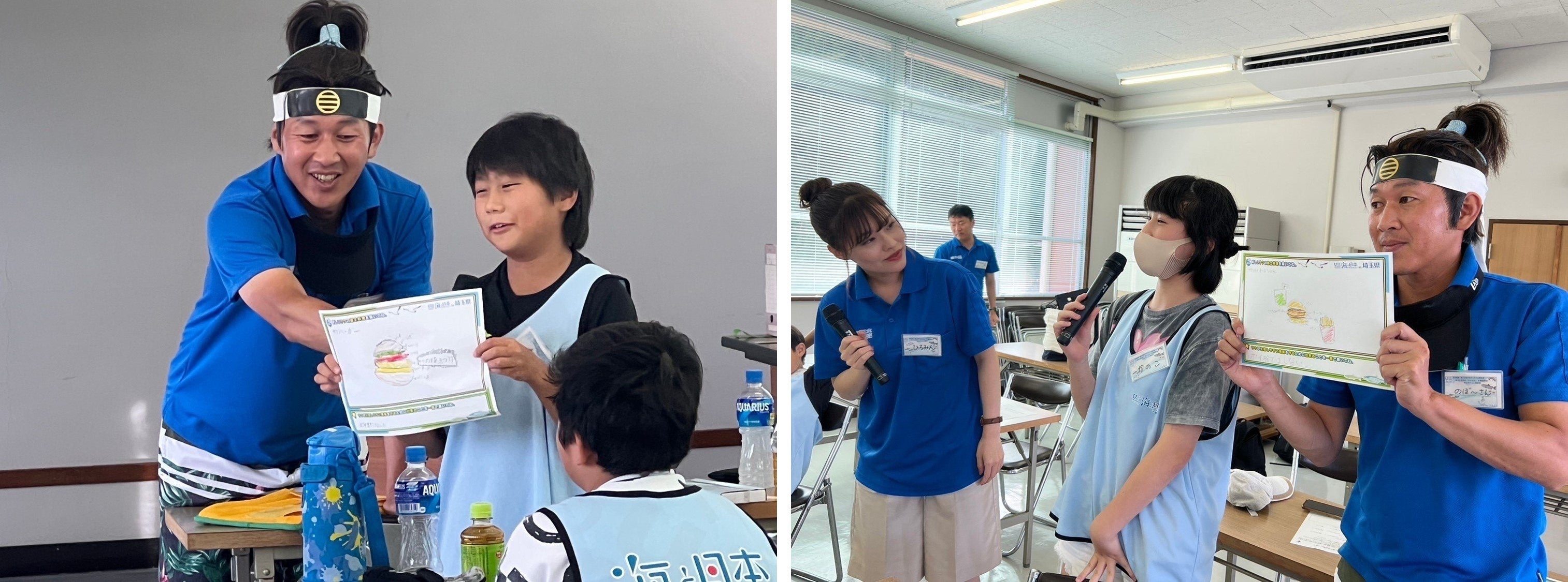 最後に、サケをもっと食べてもらうために、埼玉県で食べられなくなってきた郷土料理「すみつかれ」に代わる新しい郷土料理について考えました。そして、今回進行役として子供達を引率していただいたのぼうさんと大野ひろみさんのサポートのもと、1人ずつ発表を行いました。この中で選ばれた子供達の考えた料理が、今秋、埼玉県内の小学校の給食のメニューとして提供されます。