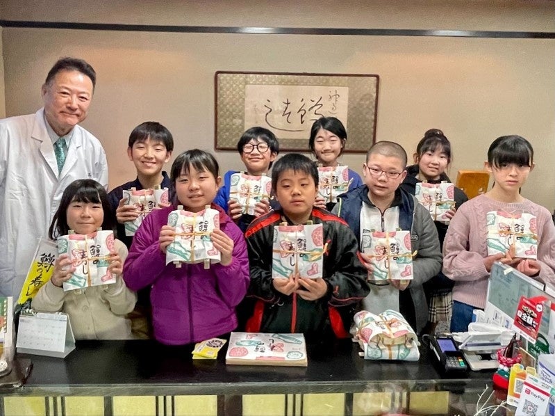 一般社団法人とやまミライラボは、2023年8月に実施した学習体験イベント「富山ますずし学校」で子どもたちが制作したオリジナルパッケージの手渡し式を、2023年11月28日(火)に開催いたしました。「富山ますずし学校」に参加した富山県内の小学5・6年生のうち9名が、販売店の一つである「富山名産鱒の寿し 高芳」(以下、「高芳」)を訪れ、同月30日(木)から販売開始するパッケージを贈呈しました。