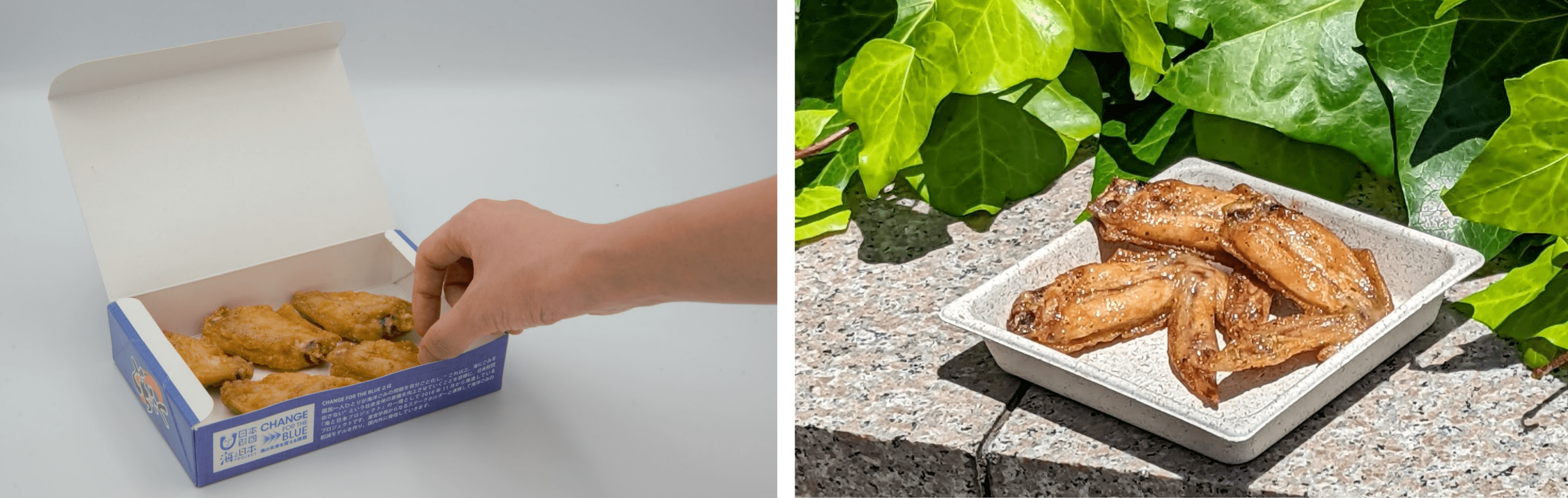 株式会社折兼さんでは環境に配慮したガバス容器の社会実験にも挑戦しました。バガス容器とは、従来廃棄物として処理されていたサトウキビの絞りカスを、容器として有効利用するために開発されたものです。木材パルプの代わりとして使用することで森林伐採量を減らせるので、森林保護やCO2削減にも役立っています。