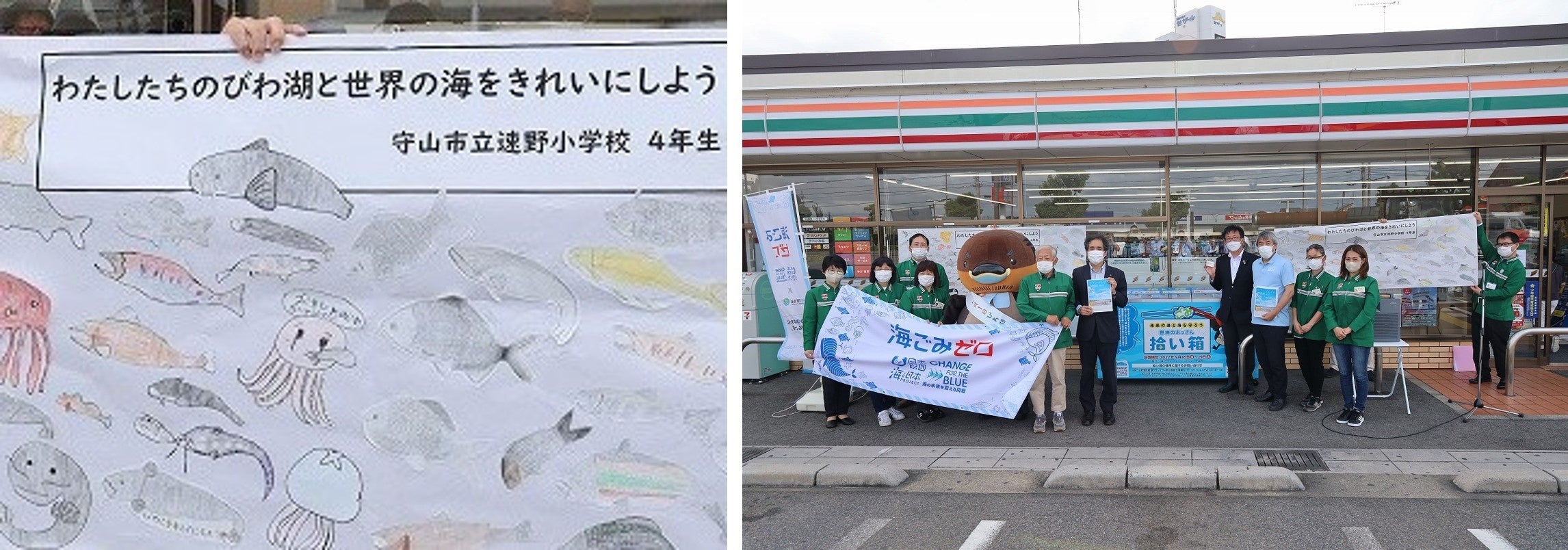 うみゴミ対策琵琶湖プロジェクト実行委員会は、滋賀県内の3市(守山市・彦根市・大津市)のセブン-イレブン3店舗に”拾い箱”をリレー方式で設置し、45リットルのごみ袋50個分のごみを回収しました。拾い箱とは、清掃活動で市民が拾ったごみを回収するもので、市民の自発的な清掃活動の輪を広げることを目的としています。