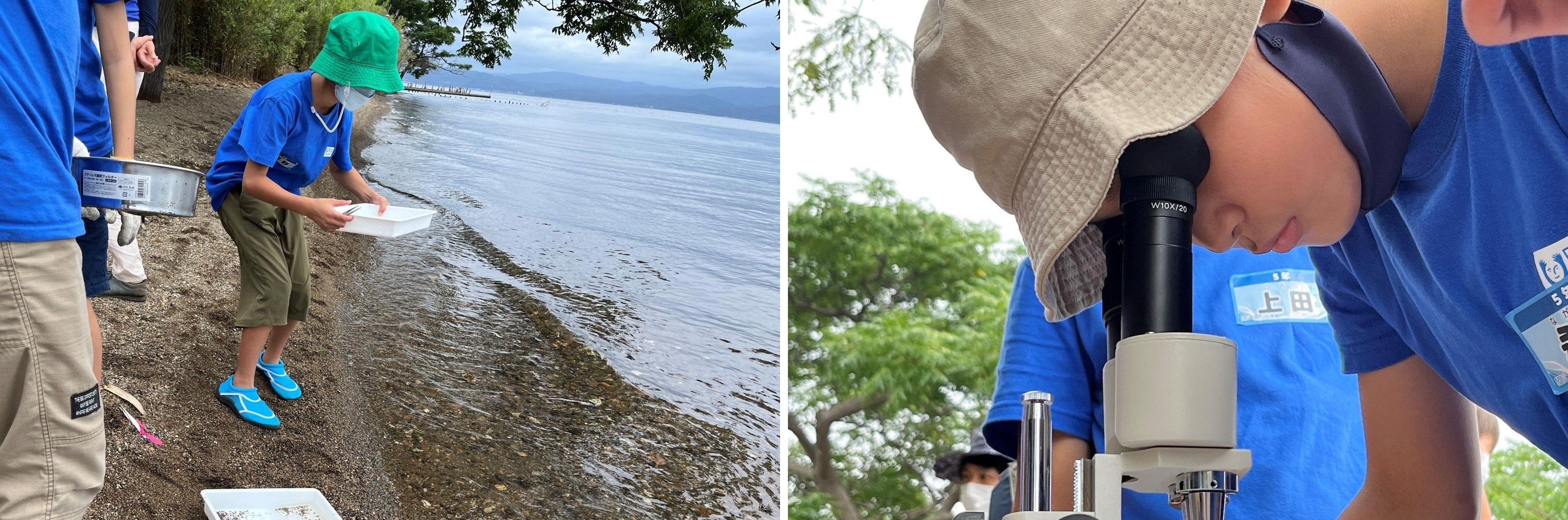 体験学習では、ヤマトシジミ漁獲量日本一を誇る宍道湖において、その環境や水産資源を維持するための取り組みや、海水に依存する汽水の生き物観察、塩分濃度の変化による生き物の違いなどをフィールドワークで学び、湖や海の環境を守ることの大切さを学びました。