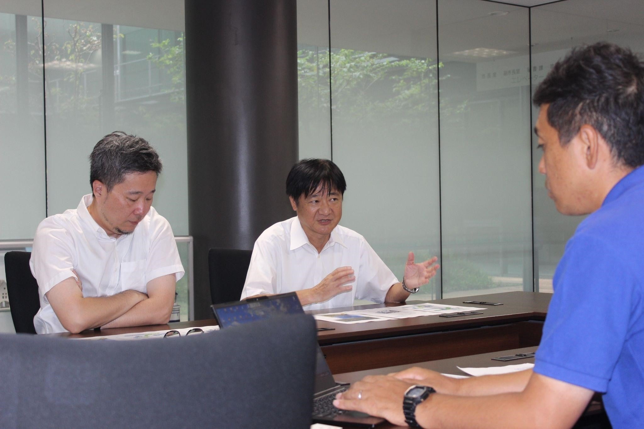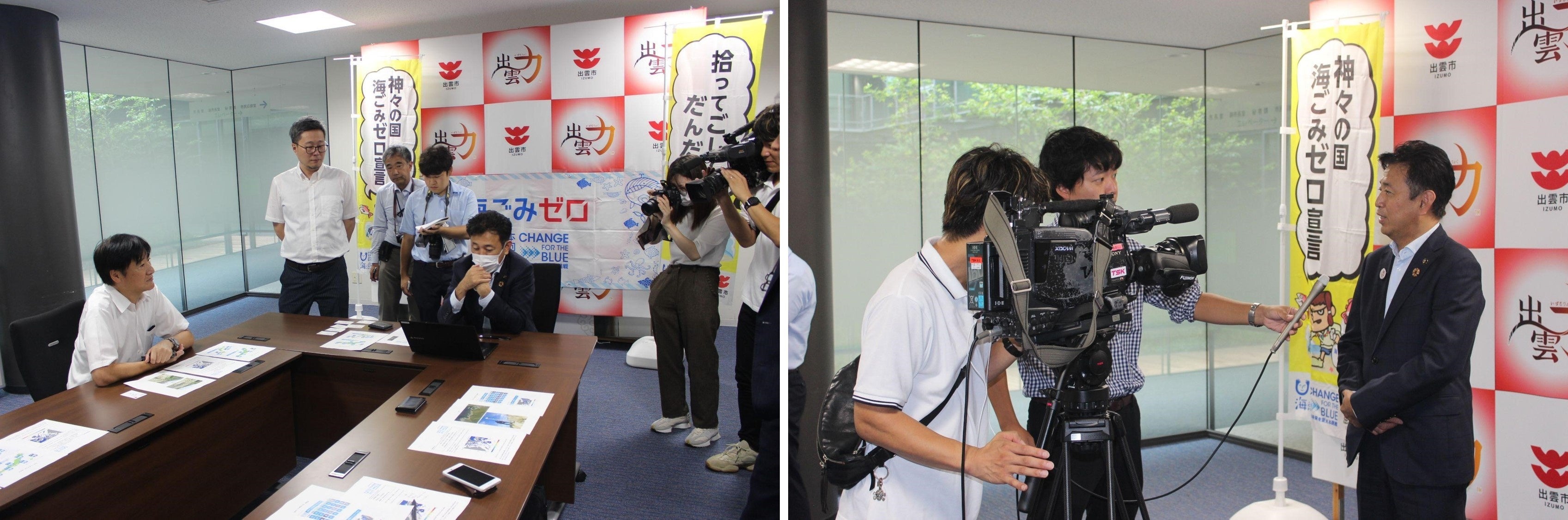 プロジェクト始動のキックオフイベントとして、調査研究地点となる出雲市の飯塚俊之市長をプロジェクトチームが2023年9月15日、表敬訪問しました。飯塚市長は同プロジェクトについて「視覚的に、また少し先を見せて海洋ごみ清掃などに取り組めることは非常にありがたい。このプロジェクトをどう生かしていくのか、検討していかなければならない」と同プロジェクトの活用策を模索したい旨をプロジェクトチームに示しました。プロジェクトチームの九州大学磯辺教授は「海洋ごみの清掃活動の効率化や、ない時にいってもごみはないので、多い時にいっても、たくさんの人が行かないとどうしようもない。効率のいい海岸清掃につながれば」と海洋ごみ予報の必要性などについて説明しました。