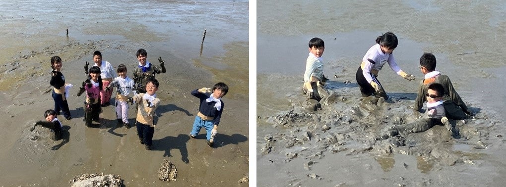 実際に干潟に入ってみると想像以上に足がはまる!最初は足だけ入ってみると言っていた子も最後は楽しくて全身どろんこに!