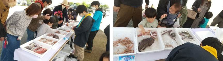 うんまか深海魚タッチコーナーは子供たちに大人気!