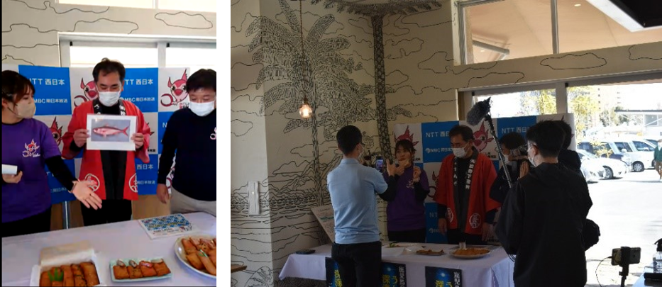 14時からはライブコマースもスタート。解体ショーで活躍した大富淳教授、MBCタレント上園あゆみさんが進行役として、商品の生産者と商品の説明、使用している深海魚の説明を、鹿児島県内だけではなく、全国の方へPRすることができました。