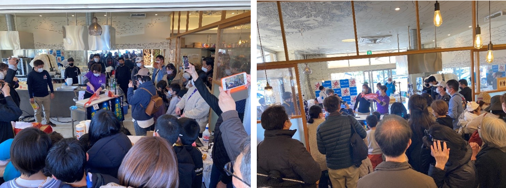 海と日本PROJECT in 鹿児島実行委員会は、2月26日(日)に一般の方を招いた、鹿児島の海の課題である深海魚の魚食普及をPRするリアル&ライブのハイブリットイベント「うんまか深海魚フェスタ」に出展しました。リアルイベントではファミリー層を中心に1000人ほどが来場し、深海魚を使った料理や、深海魚タッチコーナーなどを楽しみ深海の生き物を紹介するライブ配信では600名ほどの視聴者に参加いただくことが出来ました。