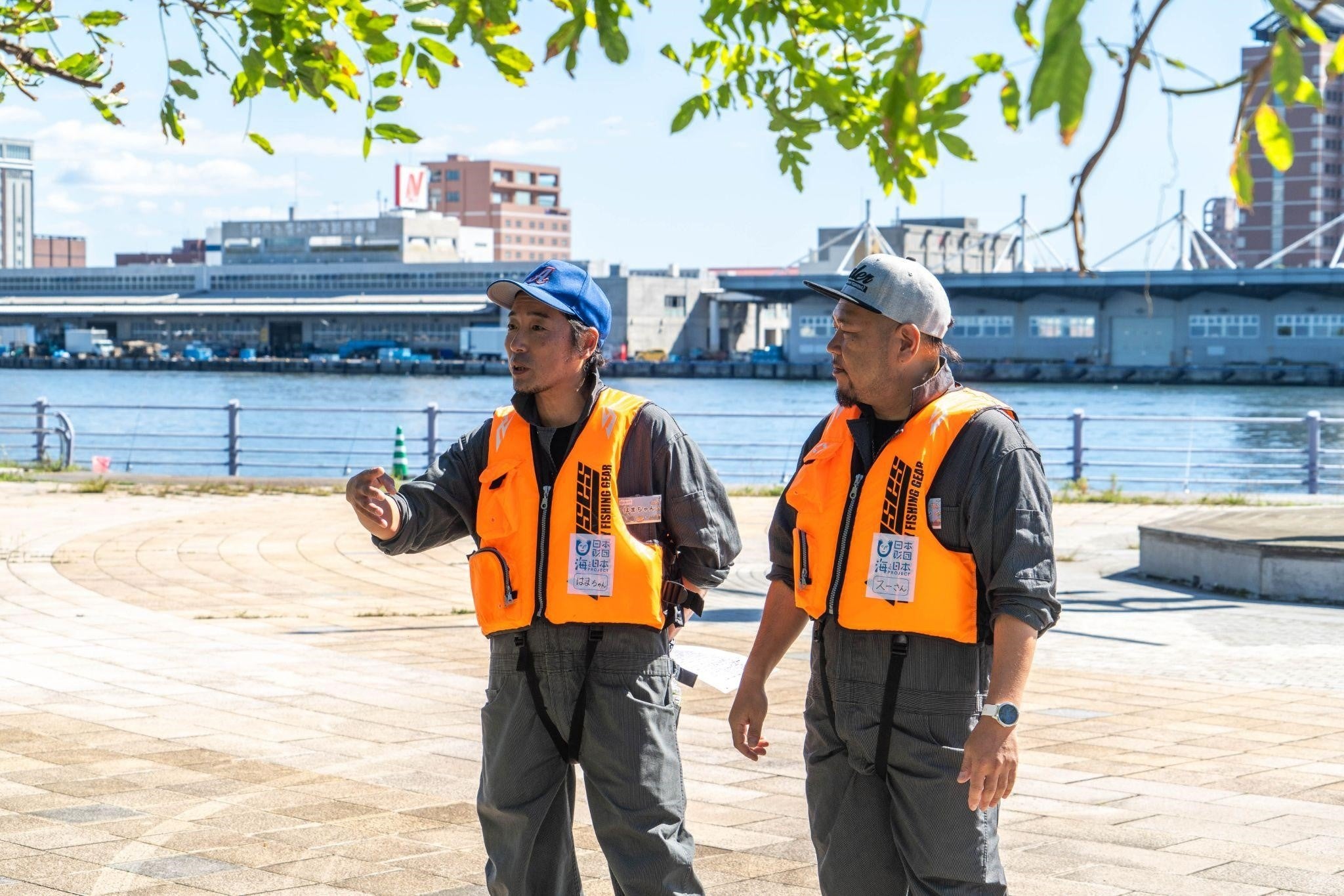 釣り具のテスターも務めるいゆさんから釣りの心得を聞いた子どもたち。待ちきれない様子で、海釣りの会場「緑の島」へ移動しました。ここからは、函館のローカルテレビ番組「釣りバカZ」に開始当初から出演する釣り人コンビ「浜ちゃん&スーさん」が釣り講師として登場。サビキ釣りのしかけは針の数が多く、釣り針に「かえし」があるので気をつけるなど注意事項のほか、虫エサを使わないので初心者が釣りを始めやすいことなど、函館なまりで軽快に説明する浜ちゃん&スーさん。参加者の笑いが起こります。