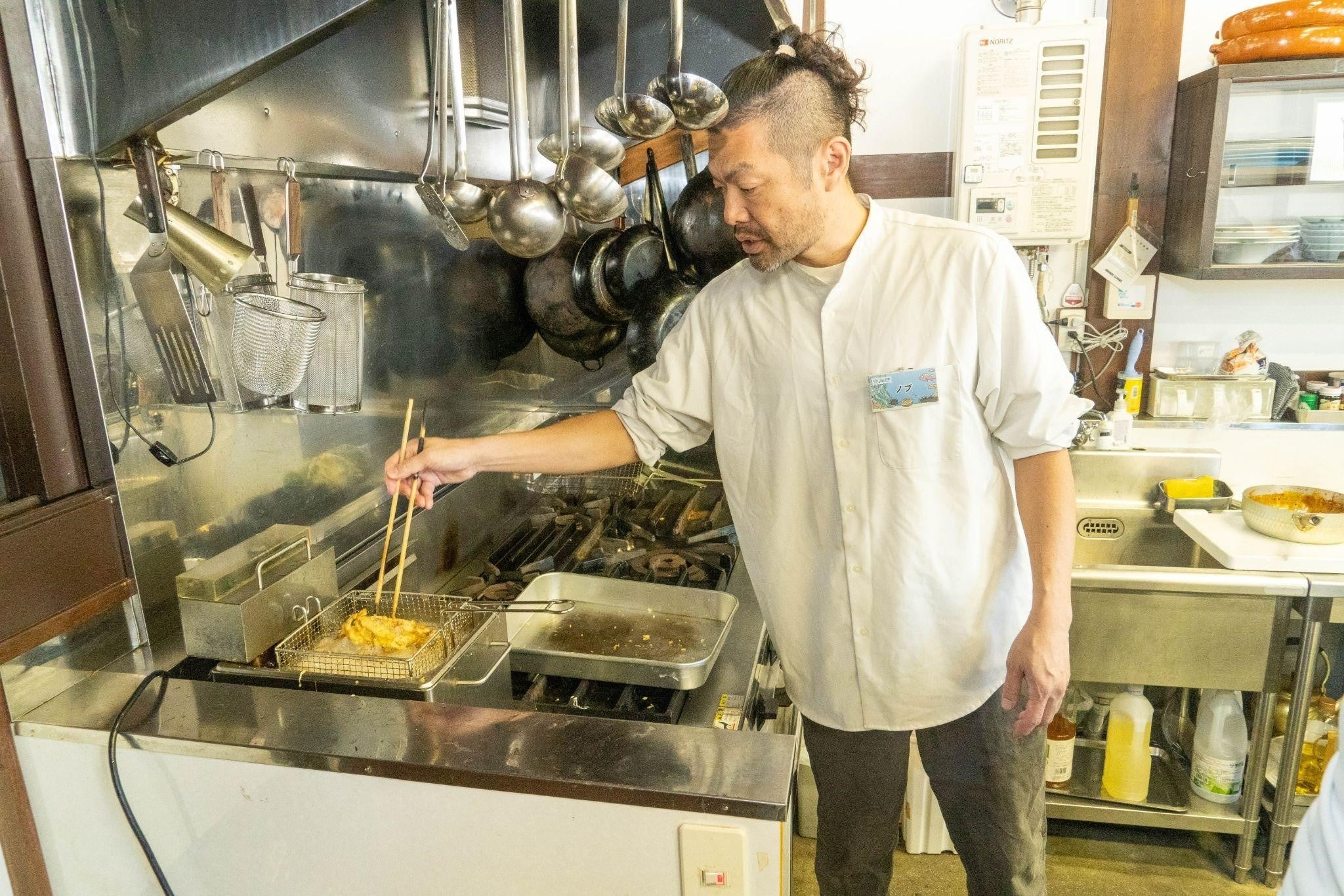 ここからはレストラン「pokkedish(ポッケディッシュ)」のシェフを務めるノブさんこと、斎藤亘胤さんの試食会タイム。さっき釣ったばかりのイワシは甘辛いタレにからめた南蛮揚げに、そして、10年前と比べて90倍も函館で水揚げされるようになったサバを使ったタコスを提供してくれました。