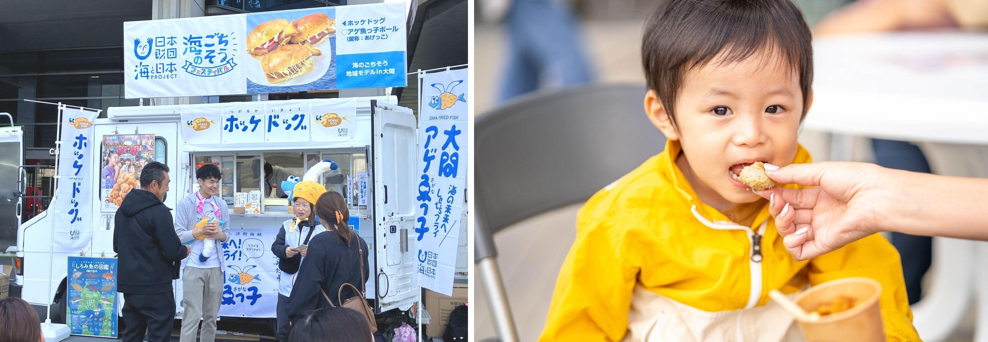 また、東京で開催されたイベント「海のごちそうフェスティバル」にも出店し、首都圏においても大間・下北半島での海の課題を発信。さらに、キャンペーン期間中の11月13日~17日(いいさかな週間)には、下北半島管内の小中学校10校の児童生徒に「海のアゲ弁」または学校給食向け「アゲ魚っ子ボール」約1,000食を無償提供し、「海の食育」としてアゲ魚っ子を味わってもらいました。