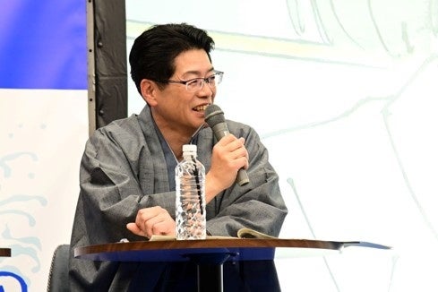 「海ノ民話アニメーションを観て、その土地の特徴的な地形、自然現象を知るとともに、“そこに神様がいる”と感じる日本人の心や、海から流れ着くものに豊かさを覚えていた先人たちのことを思いました。民話は、その土地の人たちにとって“誇り”となっていることがベース。語り継がれる中で、節をつけて義太夫になったり、説教の部分が抜け落ちて恋愛ストーリーになったり。演出や、口調の面白さ、言いやすさも必要なのかなと感じます。」と小説家視点で話しました。