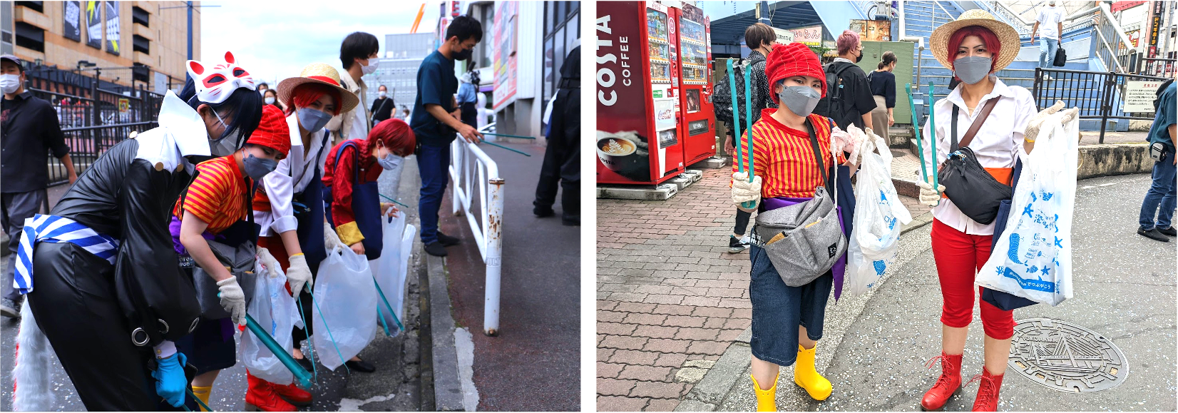 一般社団法人世界コスプレ文化普及協会(委員長:天野 知寿子)は、日本財団(会長:笹川 陽平)と環境省が主催する海洋ごみ対策を目的とした全国一斉清掃キャンペーン「秋の海ごみゼロウィーク2022」のキックオフイベントとして、「コスプレde海ごみゼロ大作戦!!2022 at横浜」を2022年9月17日(土)に横浜市にて実施しました。イベント当日は、様々なコスプレファンが集い、ごみ拾いとコスプレ撮影を楽しんでいる様子が見受けられました。なお、ごみ拾いに参加した人数は総勢約200名にのぼり、回収したごみの量は40kg以上におよびました。