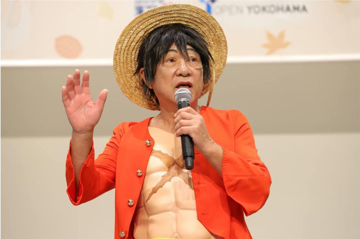 「海ごみゼロウィーク」主催者として日本財団 笹川陽平会長、環境省 西村明宏環境大臣、後援として横浜市 山中竹春市長が登壇して、海洋ごみを減らすために、まずは陸地のごみを清掃しないといけないという重要性を会場に集まった参加者に呼びかけました。また、日本財団の笹川陽平会長は「ONE PIECE(ワンピース)」主人公の「モンキー・D・ルフィ」のコスプレを披露しました。「ごみを拾って、海を守ろう!」という掛け声に合わせて参加者全員が拳を突き上げ、秋の海ごみゼロウィーク清掃活動がスタートしました。