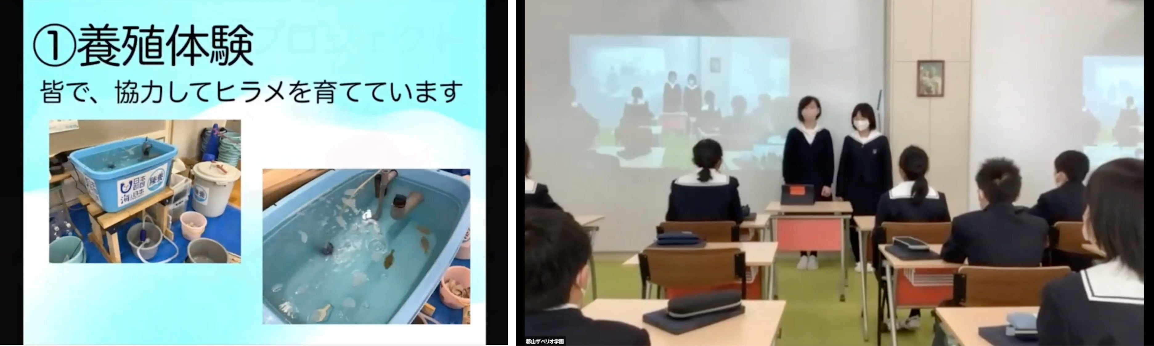 最後に、これまで養殖についての講師を務めてくださったNPO日本養殖振興会の齊藤先生から「いろんな学校の発表をきけて良かったと思う」「大切な経験をしたと思うので、それを今後も生かしていってほしい」というメッセージをいただきました。その後、画面越しに記念撮影をして交流会は盛況のうちに終了しました。