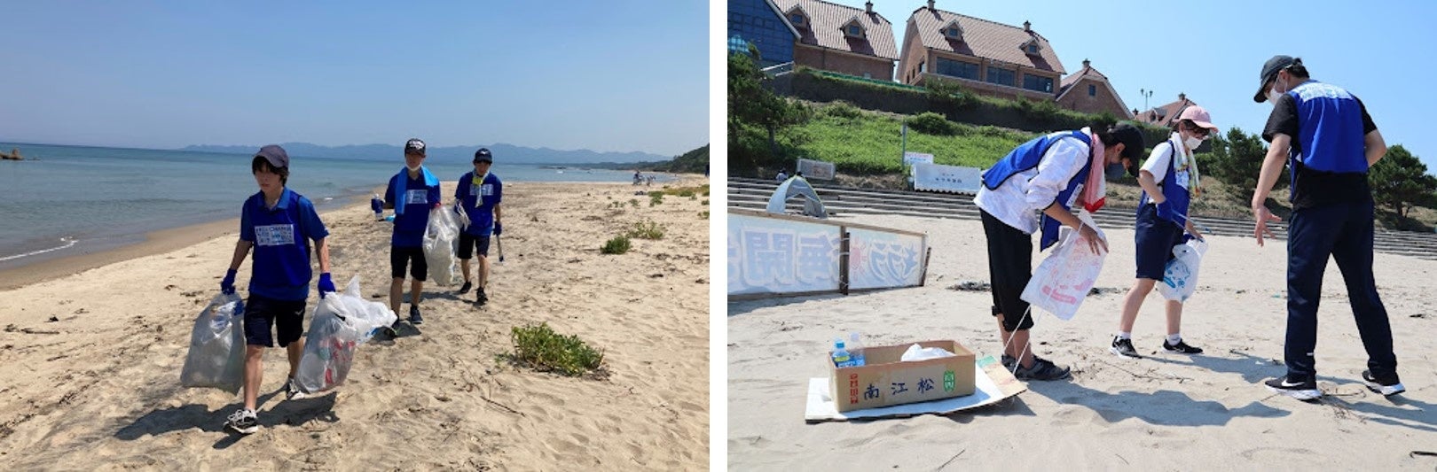 部活のユニフォームなどを身につけた参加者たちは海岸に散らばり、ごみを拾いをスタート!