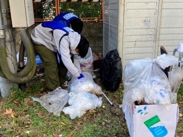 公衆トイレ横の物陰で大きなごみ袋を見つけたのは、滋賀県代表「fancy dog」チーム。隅田川花火大会で捨てられたごみでしょうか、中からは大量の空き缶が。驚くほどの量でしたが、ここでオリジナルアイテム(キャスター式でごみを持ち運べるアイテム)が役立ちました。