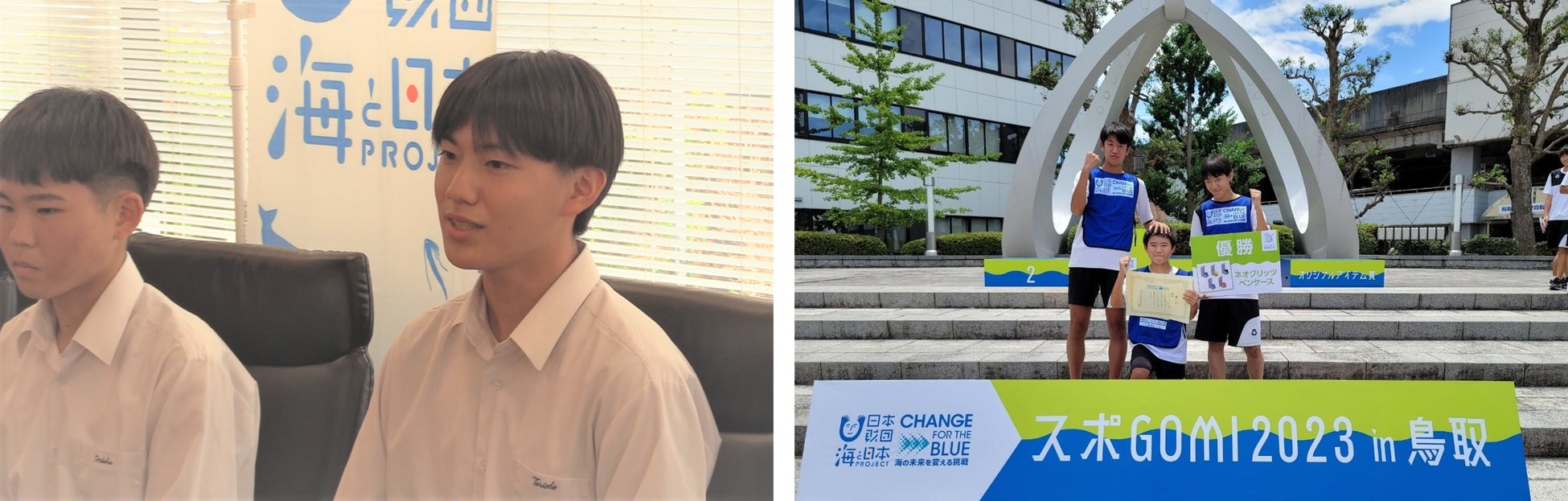 2023年7月15日に行われた『スポGOMI甲子園2023・鳥取県大会』で優勝した鳥取商業高等学校(鳥取県鳥取市、校長:髙垣 知博)在校生3人組の「鳥商サッカー部オムライス」が、大会での成果を報告するため鳥取市の深澤義彦市長を表敬訪問しました。