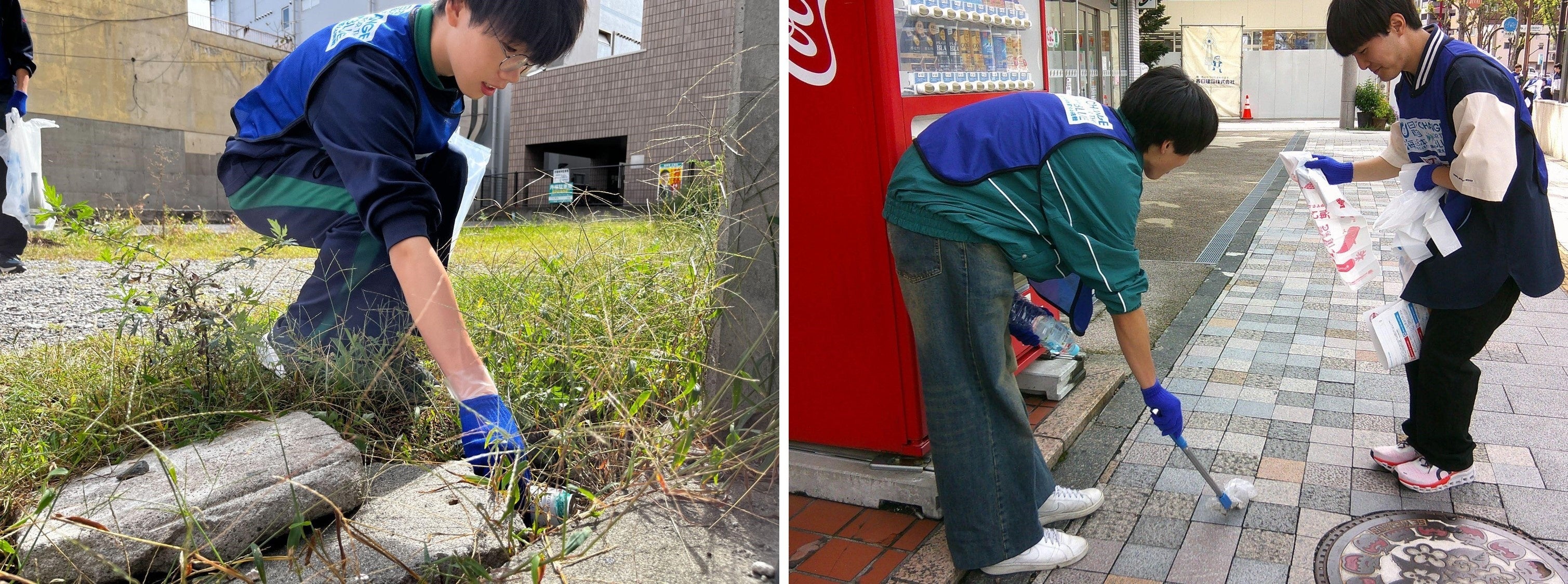 開閉会式会場となった長野市権堂イーストプラザ市民交流広場は長野駅からほど近い中心市街地にあります。何気なく通りを歩いているとごみは見当たらずキレイな街並みです。しかし、すぐ近くには繁華街の権堂エリアがあります。飲食店が多く並ぶこのエリアは前日が金曜日ということもあってか、路地にタバコの吸殻や空き缶などが多く散乱している様子がありました。「大人は責任をもってごみを捨ててほしい。」「ポイ捨ては恥ずかしい行為だと感じてほしい。」と参加者。また、ごみが目立ったのは、駐車場です。さらに人目が付きにくい、柵の裏側に隠すように捨てられていました。海洋ごみの7~8割は内陸部から流出していると言われており、長野県においても海洋ごみ問題は他人事ではありません。高校生たちが長野県代表を目指して競い合ったスポGOMI甲子園長野県大会。同年代と清掃活動という行為を通して交流し合い、上流県ながのから海洋ごみ削減に貢献した1日となりました。