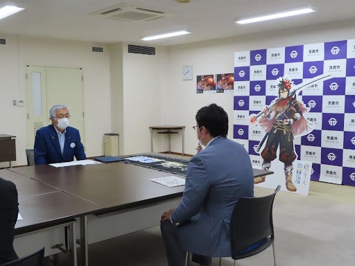 燈の守り人キャラクターを活用して、地域の灯台を歴史・文化資産として活用する機運をつくるため、キャラクター化の対象となる「入道埼灯台」が立地している秋田県男鹿市の菅原広二市長を、「燈の守り人」製作委員会プロデューサーの柴田英知が2022年7月15日(金)に表敬訪問し、キャラクターの贈呈式を実施しました。