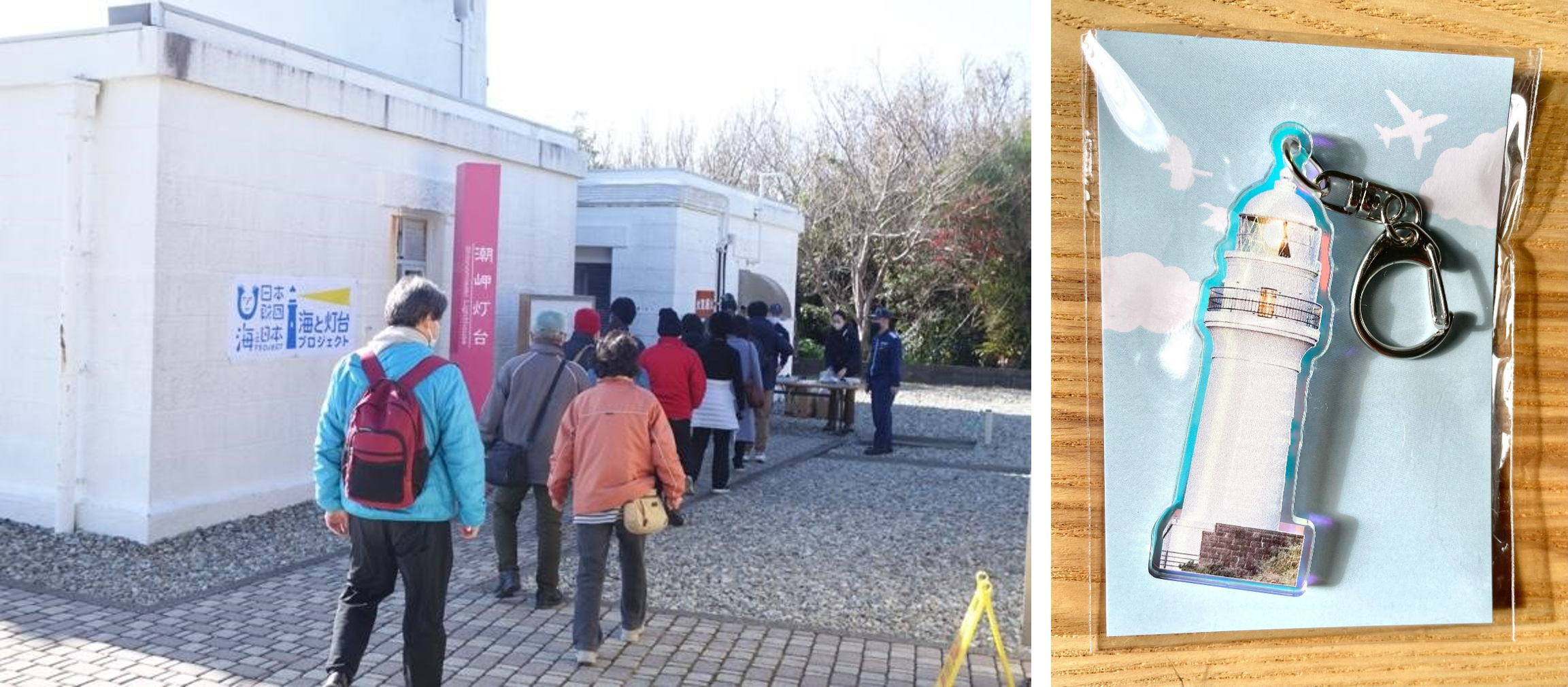 またこの日はオリジナルグッズとして灯台のアクリルキーホルダーを配布。さっそくカバンに付ける人もいて、灯台を身近に感じるきっかけとなったようです。