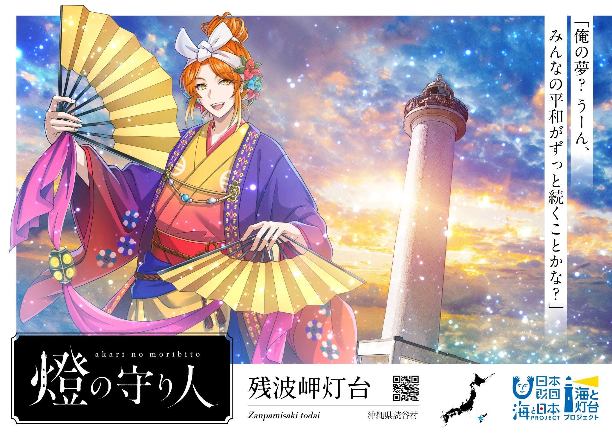 残波岬灯台は背が高いところが特徴です。南国をイメージする明るいカラーで、衣装は地元の伝統で踊るときに着るものです。近くに平和を唄った記念碑があるので、牧歌的で平和主義なキャラクターにしました。灯台に来る間にボイスドラマを聞いていただいて、だからこんな立地にこんなスペックの灯台があるんだとわかるようになったらよいと思います。