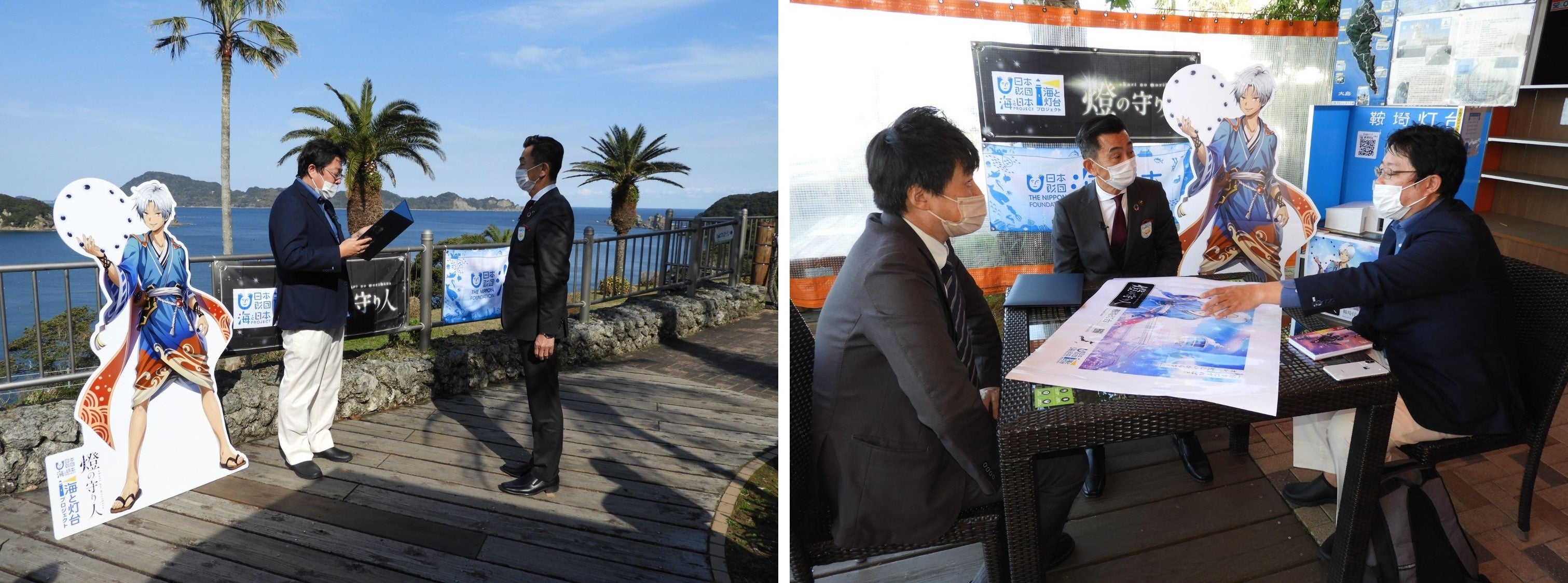 全国灯台文化価値創造フォーラムは、燈の守り人キャラクターを活用して、地域の灯台を歴史・文化資産として活用する機運をつくるため、キャラクター化の対象となる「鞍埼灯台」が立地している宮崎県日南市の髙橋透市長を表敬訪問し、キャラクターの贈呈式を実施しました。