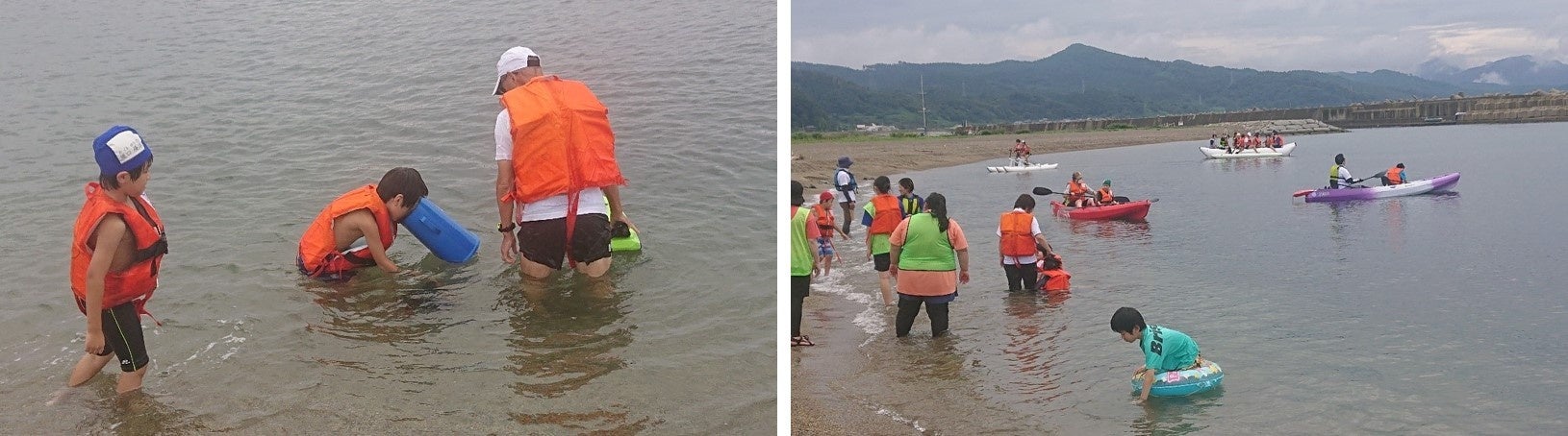 海に近い地元鶴岡市の施設ではありますが、障がい者ということで、ほとんどの施設利用者の子供たちは海での遊びが初体験のようでした。特にマリンアクティビティは全員が初体験、子どもたちは楽しくて、バナナボートから降りない、海から出ない子続出のバリアフリービーチイベントでした。