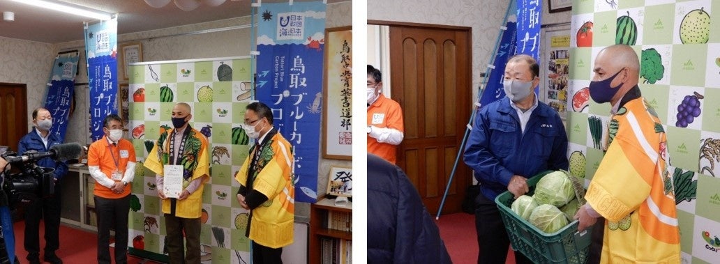 鳥取ブルーカーボンプロジェクト「豊かな海の再生を目指して」実行委員会(一般社団法人海と食文化フォーラム)では、ウニ養殖の連携を開始したJA鳥取中央倉吉秋冬野菜生産部を12月16日に「鳥取の豊かな海の再生応援団」に認定し、同日、「鳥取の豊かな海の再生応援団」の認定証授与式を開催しました。