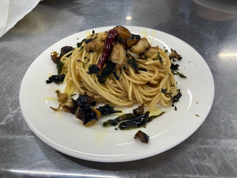 完成したパスタはサザエ・ウニ・ワカメの風味がしっかり乗っており、生徒や試食した先生たちからも大変美味しいと好評を得られました。また実際に駆除されたウニを食べることで、生徒たちの本プログラムに対する理解や関心がさらに深まった様子でした。今後は実際に2年生が海に行き、ウニの大量発生の現状とウニの駆除体験を実施する予定です。