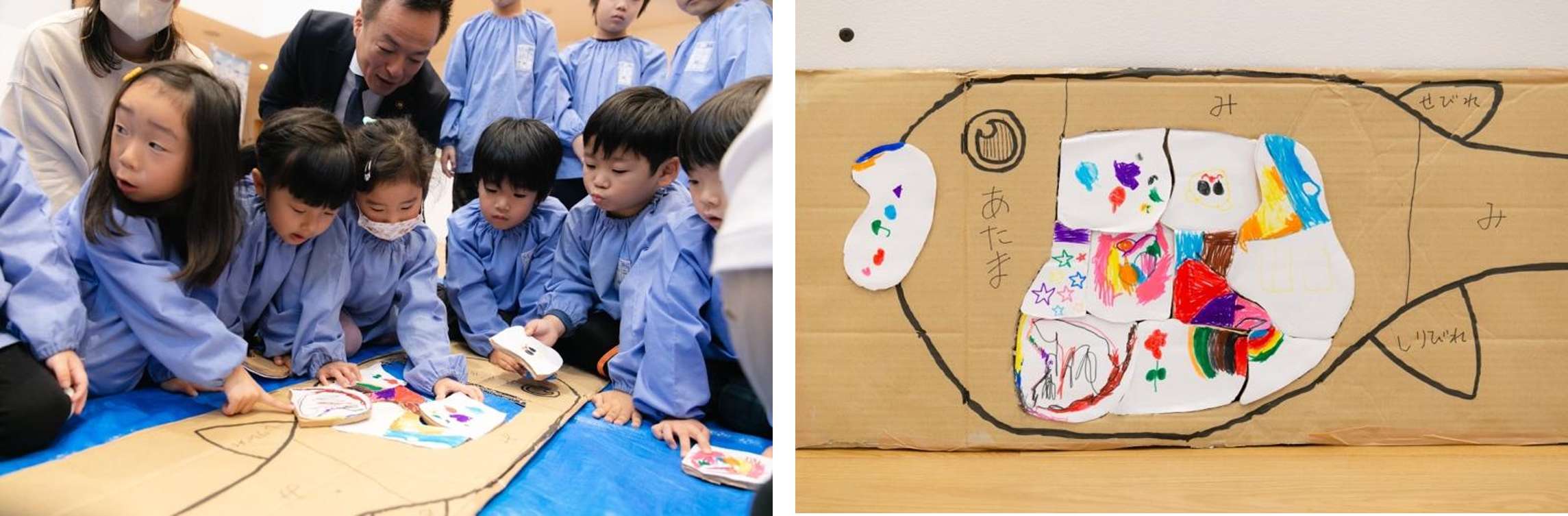 出来上がった素敵なフグのパズルは、イベントが終わってからも、子ども園で知育玩具としてお使いいただくことになりました。
