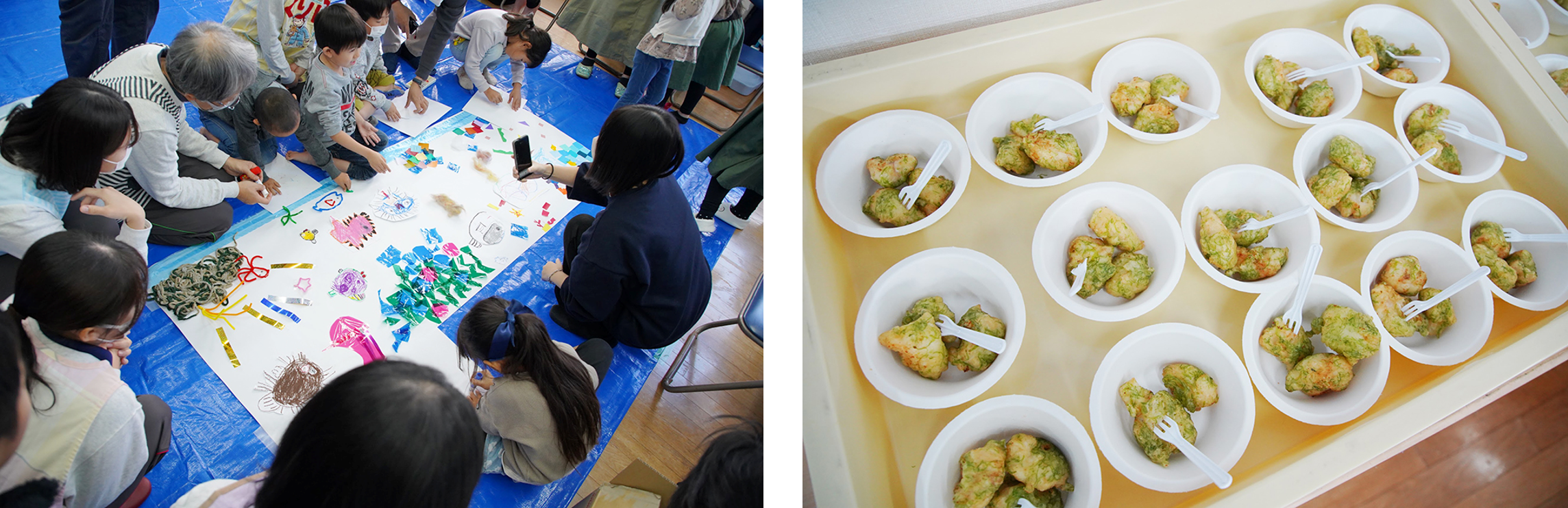 また多くの保護者やご家族の皆さんにもご参加いただき、和やかな雰囲気の中で楽しく総合的な学びを提供することができました。最後に「フクフリット」の試食。フクフリットは下関沿岸の天然塩とアオサを原料に使い、ふわっと海の香りが口の中いっぱいに広がります。参加者全員が思わず笑顔になる美味しさでイベントが幕を閉じました。