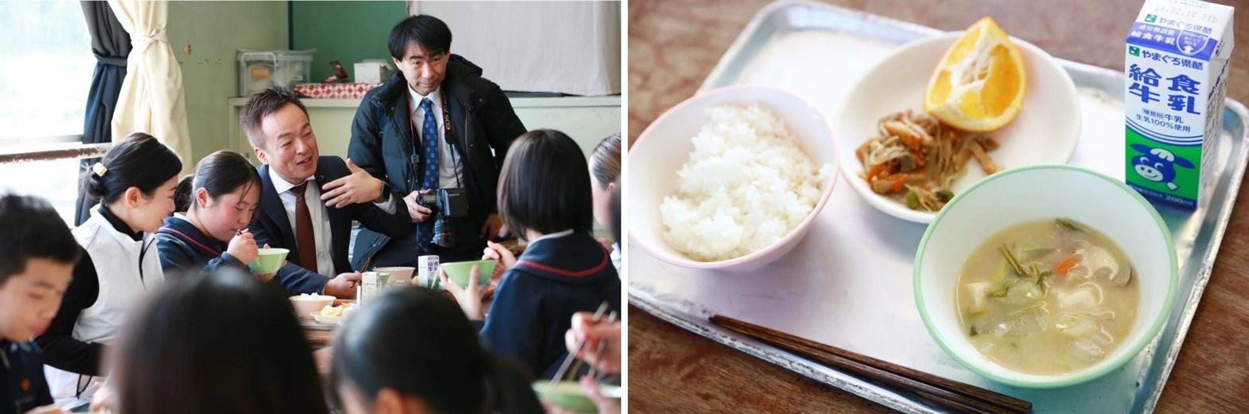 下関市の前田市長や、この日関わったスタッフや来賓の方々も、児童と一緒に給食をいただき、楽しい時間を過ごすことができました。海やふくのことを知り、川柳を創作し、実際に給食でふくをいただくことで総合的な学びとなると同時に、児童のみなさんの記憶に残る授業になったのではないでしょうか。